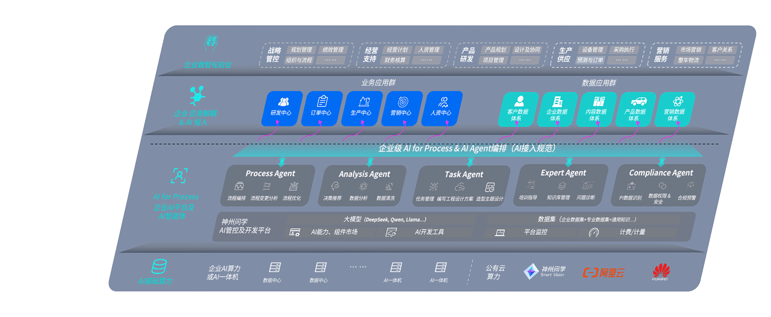 鼎点平台问学智车解决方案是一套基于AI技术的汽车行业智能化系统,,覆盖从底层算力到顶层AI应用的全栈方案。。方案由算力层、、、模型层和应用层组成:算力层,,方案支持多种一体机配置,,,,具备云端灵活部署、、、多云适配以及动态优化计算资源的能力;模型层,,,,鼎点平台问学平台版提供了企业级AI应用一站式构建与管理平台,,支持基于后训练强化技术的汽车企业专属模型的训练、、、评测和运营;应用层,,,,鼎点平台问学DeepSeek版提供包括超级员工、、、智能招采、、智能营销、、、智能客服、、AI for BI等一系列解决方案,,,,可助力汽车行业实现数字化转型,,,让管理更智能、、、响应更敏捷。。。。